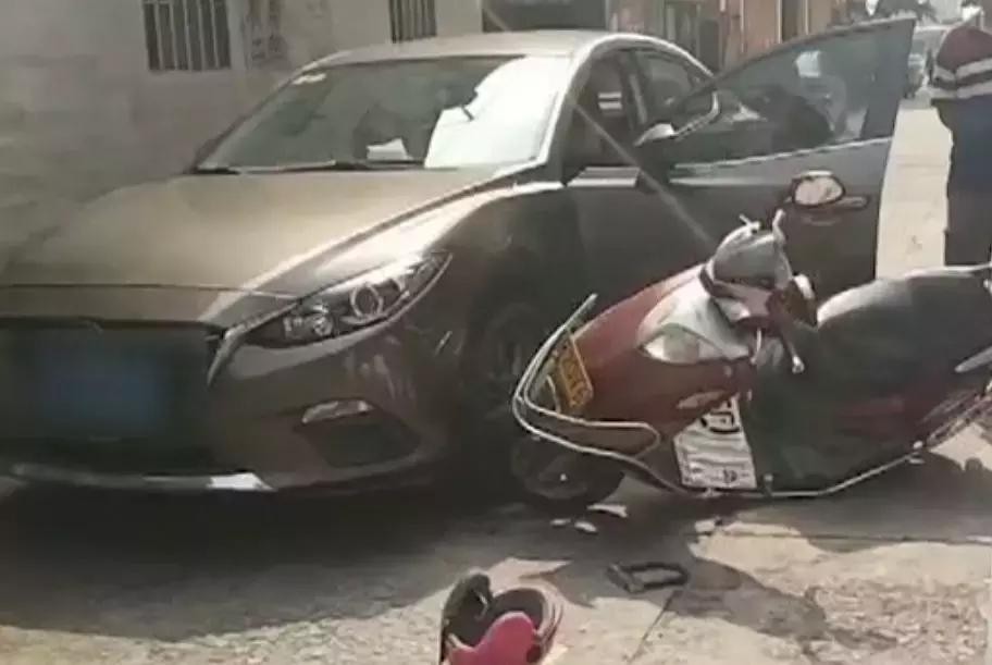 2016年9月份,封开一司机突然打开车门,撞到了经过的一对母子。