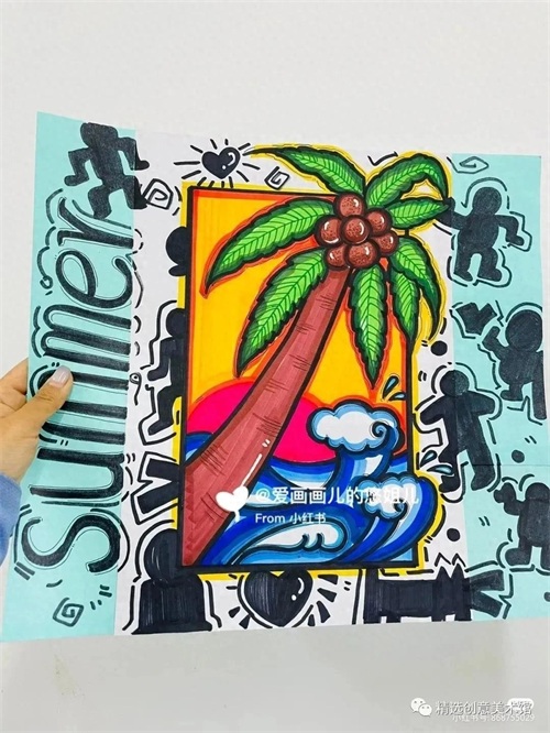精选43张少儿美术绝美范画,超全线描、马克笔剪贴装饰画,快收藏