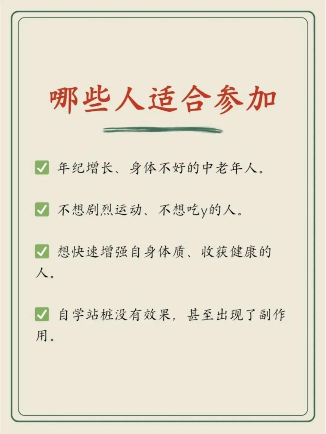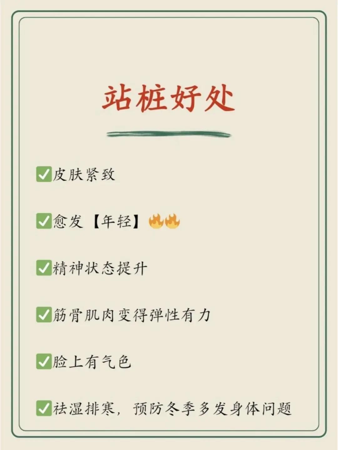 不管你是久坐办公室的白领或逗留在灯火酒绿的打工人,还是脸朝黄土背朝天的农民,为了自己的健康身体,每天都要抽时间站站桩。站桩能够缓解疲劳、提升身体素质、改善精神状态、预防疾病。