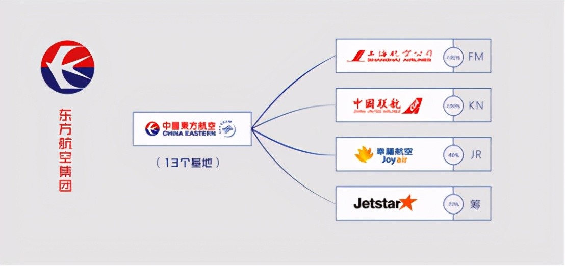 东航目前有地区分公司14个,飞机460架;控、参股子公司包括:上海航空88架、中国联合航空33架,共计581架。