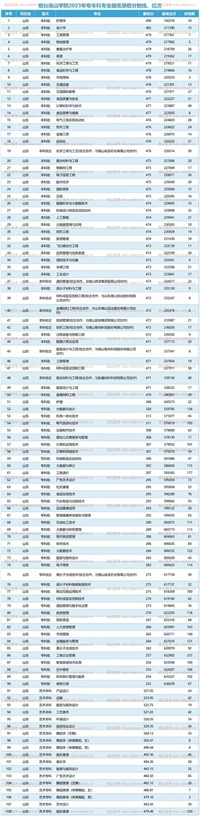 烟台南山学院2023年专本科最低录取分数线位次