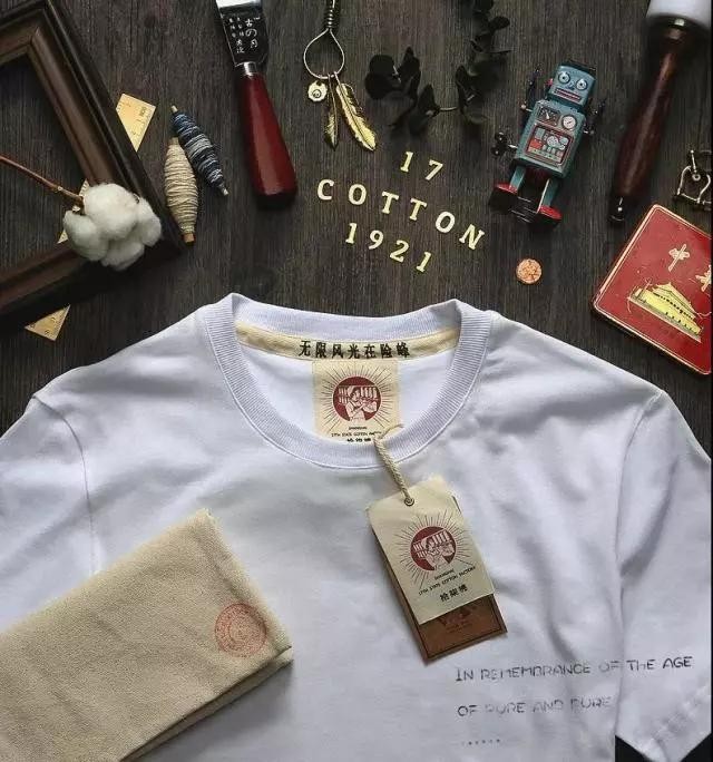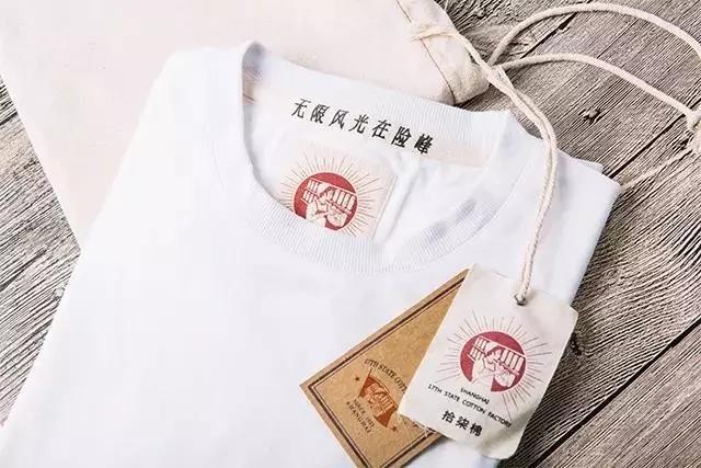 为了纪念工厂和逝去的青春,军武推出了这款"国棉十七厂"制造工艺的小白T,其原材料完整采用当老厂当年的制作成的纯正"拾柒棉布料",复原了老上海的元素,衣服后背标签还有伟大领袖毛泽东主席的著名诗句:无限风光在险峰,让T恤更有故事和质感,仿佛回到那个激情燃烧的岁月!