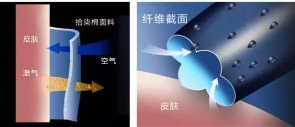 通过快吸棉能快速吸收体表汗液,扩散到棉织物表面,提升液体表面积,形成水汽的快速蒸发,保持体表干爽。