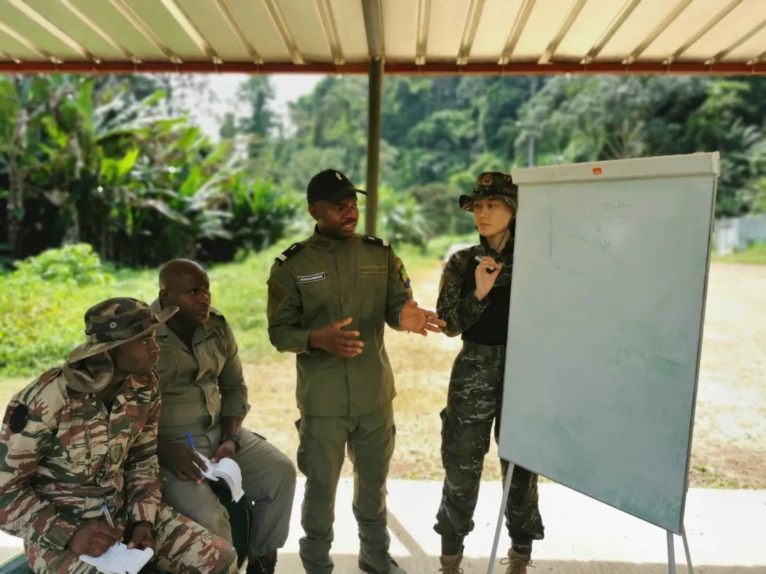 郭子睿(右一)与外军交流
