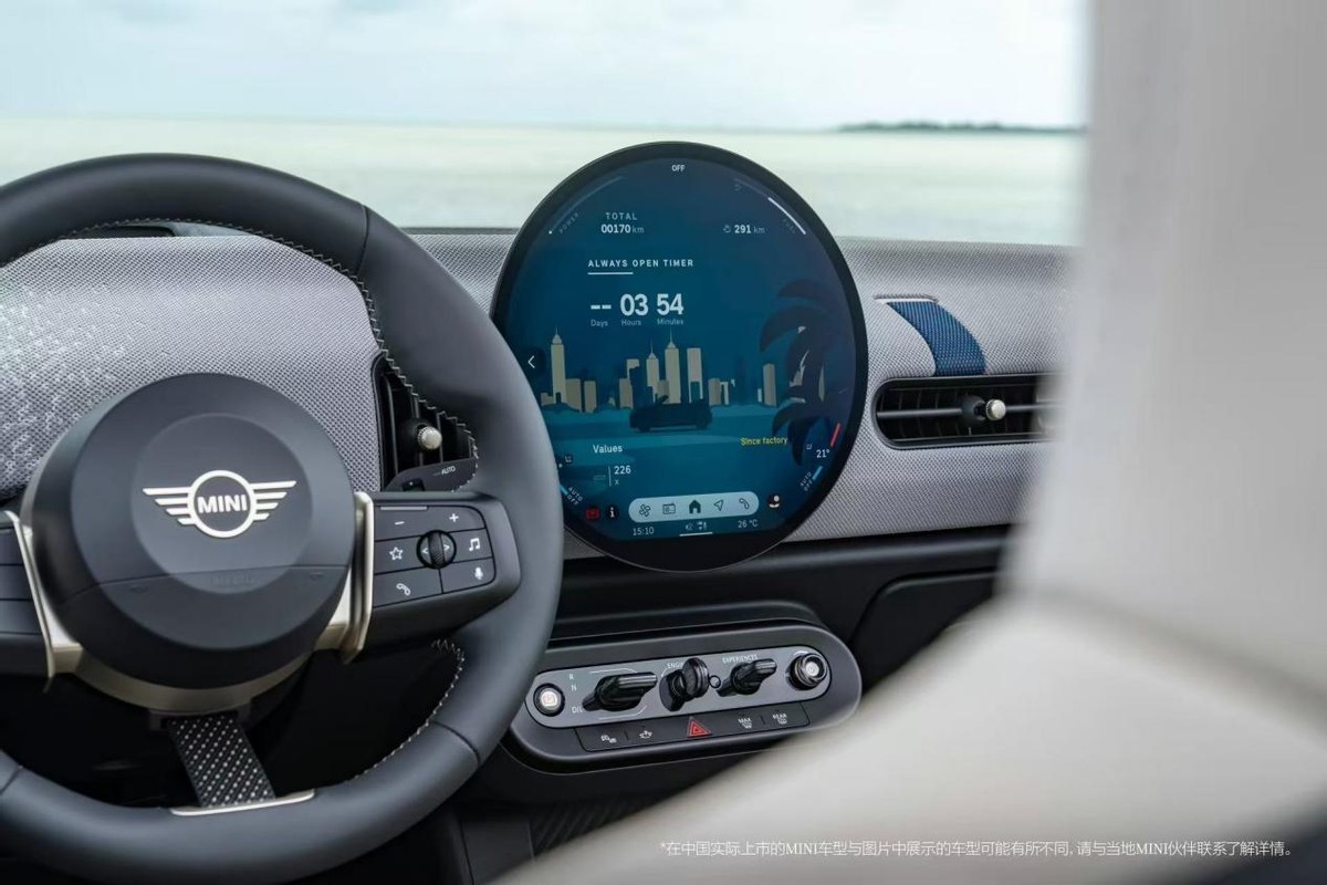 全新MINI Cooper Cabrio在圆形OLED中控屏上保留了经典的“敞篷计时器”功能(Always open timer),并首次全屏集成在全新圆形OLED中控屏上。它记录着每次敞篷的时间和累计时长,并通过动画显示天气和温度信息,完美适配创新圆屏,将开怀驾驶的每时每刻记录在册并“最大化”呈现,让快乐变得“有迹可循”。