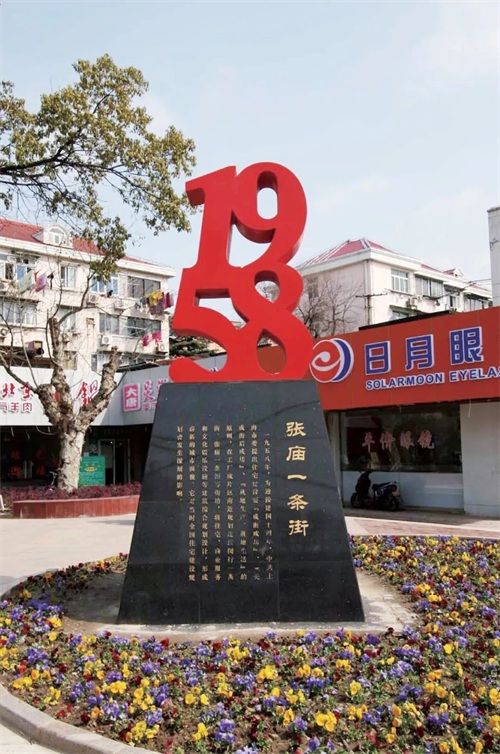今日树立街头的张庙一条街纪念塑像