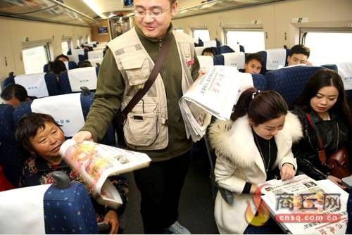 本报记者张坤向乘客免费发放当日出版的《京九晚报》
