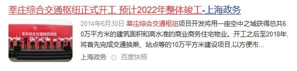 该项目2014年6月开工,目前一期住宅建成并交付;二期已经结构封顶;2021年完成《莘庄综合交通枢纽工程对铁路工程影响专题报告》技术审批,为大平台开工奠定了坚实的基础,现三期地下部分桩基已完成,地上部分即将准备施工。