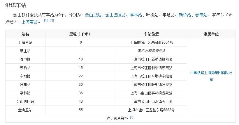 分别为上海南站、春申站、新桥站、车墩站、叶榭站、亭林站、金山园区站、金山卫站