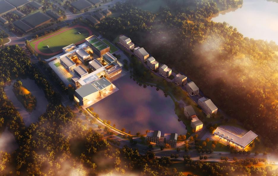 学校的学生公寓很有特色,将沿袭纯正的学院制英式寄宿特色,类似《哈利·波特》中学院制的管理。在学校的效果图中,有一圈围绕着学校内湖的多层学院寄宿楼,这就是每个学院的独栋学院公寓,每个独栋公寓安排约70名学生和6名老师,每天早上6点到晚上11点,陪着孩子们的不是宿管阿姨而是任课老师,他们的角色既是老师,又是家长和朋友。