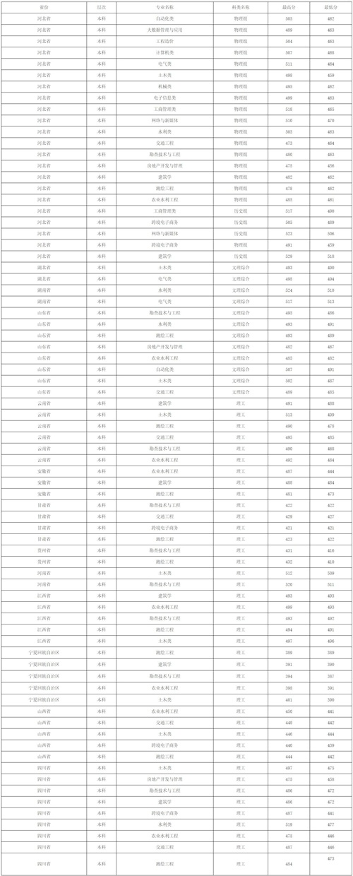 2022年本科专业录取分数如下: