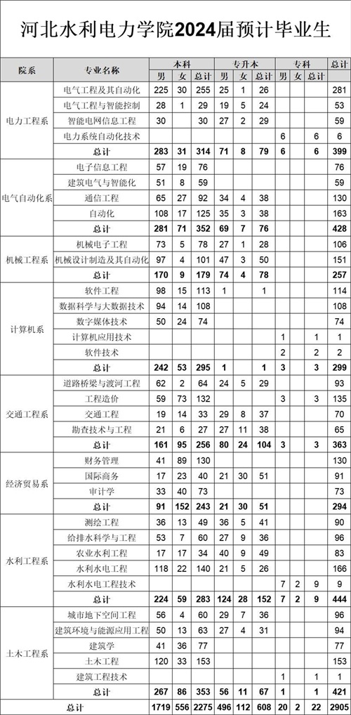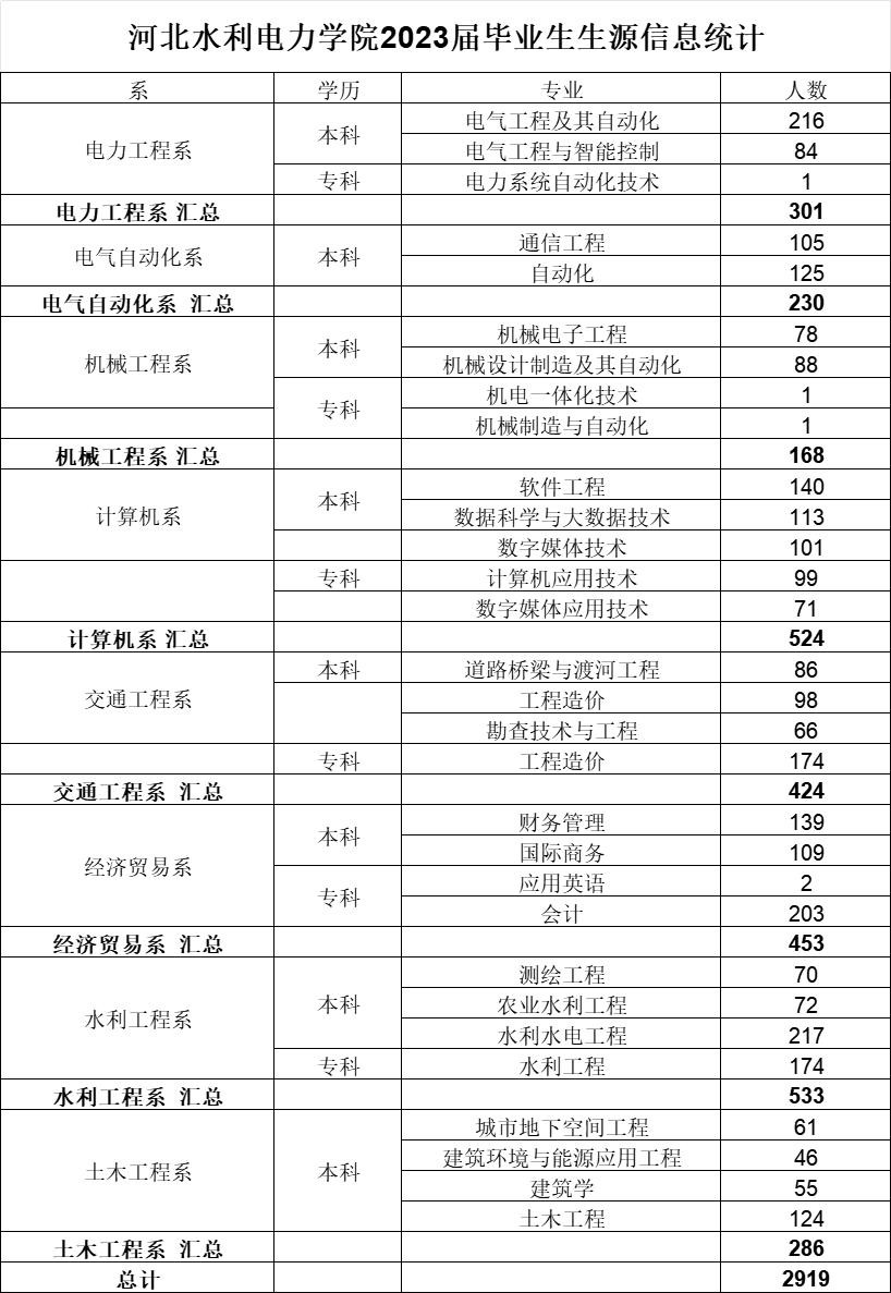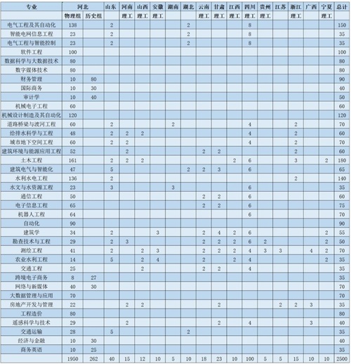 学校网站“学校简介”栏目给出的说法是,该校现有八系三部一中心共12个教学单位,设本科专业33个,专科专业27个。省级一流本科专业建设点10个(自动化、土木工程、水利水电工程、电气工程及其自动化、机械电子工程、城市地下空间工程、测绘工程、国际商务、软件工程、道路桥梁与渡河工程),形成了以工学专业为主体,水利、电力专业为特色,土木、交通、信息技术、自动化、机械、经济管理等专业协调发展的学科专业体系。这些数字何时更新,是否保持最新,作为外人的我们无从得知。然而,我们可以通过2023年招生计划,透视一下该校的专业设置及发展重点。一般来说,招生量大的专业往往就是受考生欢迎的专业。