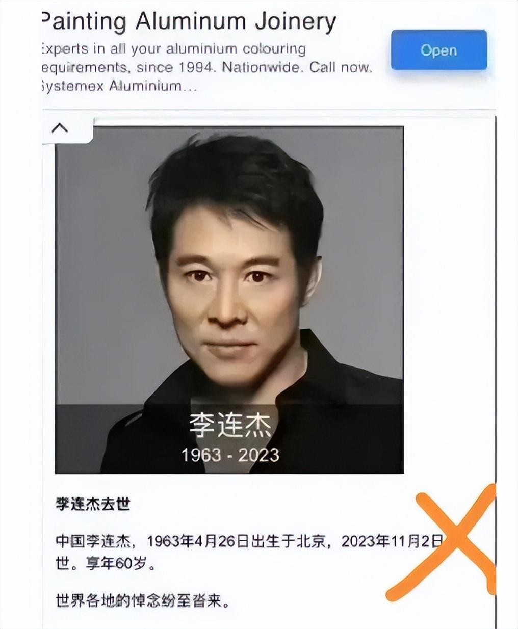 “李连杰在美国去世了。”