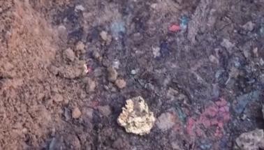 盗墓分子为了达到目的,不惜尝试用炮弹头捣碎石头。
