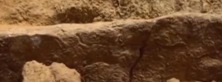 而在这个“水泥”石墙和棺椁的中间有一米厚。