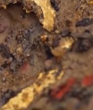 在不断挖掘之下,而有的金箔十分的小,稍不注意就没了。