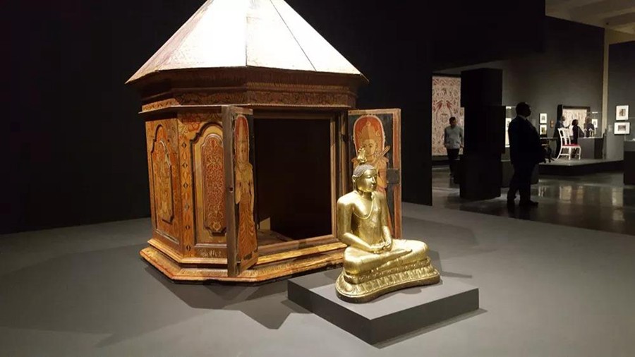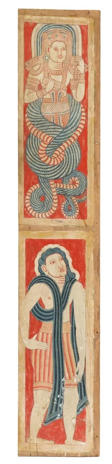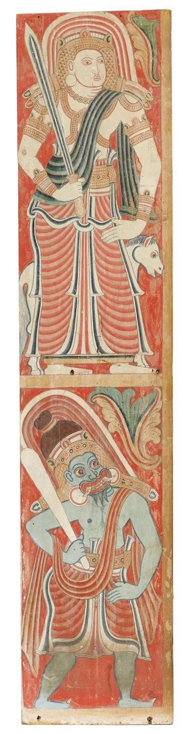 在本次展览中,展出的还有一些17世纪和18世纪的木制神龛板,它们的绘画描绘了印度诸神(其中一些是印度教徒)与斯里兰卡佛教人物组成的保护性万神殿的结合。