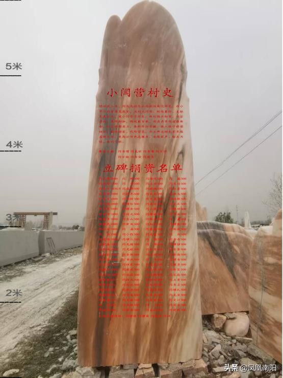 村碑高6.1米,以厚重石材立于村口,兼具导航、文化展示与景观美化功能。其底座刻有建村时间、姓氏源流及捐赠名录,未来还将成为村民集会、节庆活动的公共空间。项目总指挥闫金安村支书表示:“村碑是乡村振兴的宣言,我们计划以此为契机,开发文旅打卡点,吸引游客,带动经济。”