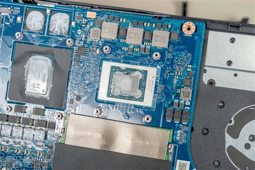 ▼漂亮的4800H,8核心16线程的小怪兽。笔记本主板的做工不错,处理器和显卡核心四角都有大面积的点胶,辅助固定,防止因为震动、碰撞造成虚焊、脱焊等情况