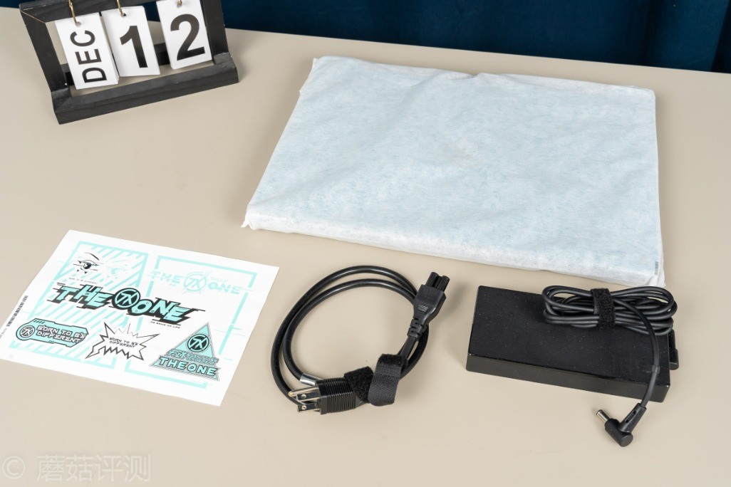 ▼包装里面的配件很简单,笔记本主体,套在无纺布袋中,然后就是贴纸和电源适配器