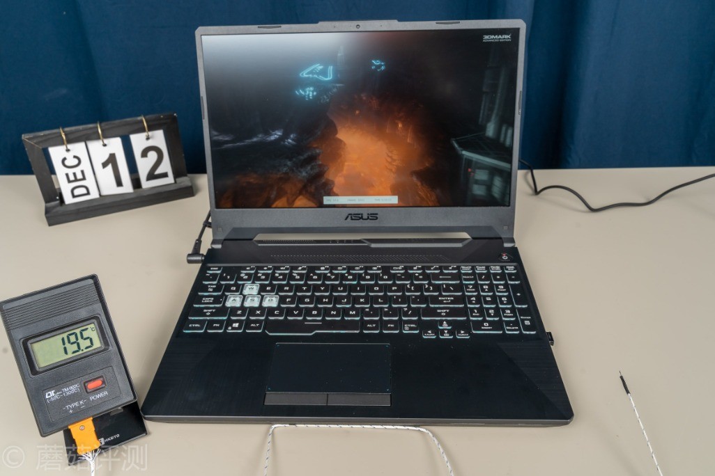 ▼接着是散热测试,室温再19.5℃左右,笔记本这个时候在进行3Dmark的压力测试,FSU模式,模拟日常高负载游戏的情况