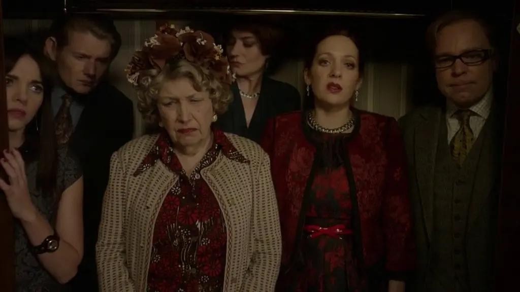 还有一位在剧中表现非常出彩的老太婆Geraldine,她表面是富豪家的女仆,但由于曾帮老爷性侵男孩放风、处理罪证,所以她觉得自己跟老爷关系不一般,地位绝不止于女仆。所以她在派对当天盛装打扮,和宾客平起平坐,拒绝给客人倒酒,竟然还使用主人房间的马桶。也是她,肆无忌惮地提起当年的性侵游戏,狐假虎威地表现自己地位的与众不同。其实在富豪家看来,她还是女仆,从Rebecca背地里说她是清洁工,大家嘲笑她是喂鸟人可以看出。