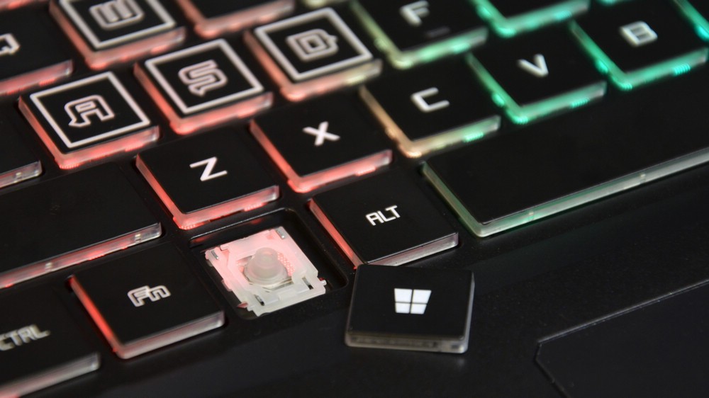 为了符合我们年轻人的审美要求,X3为我们配置了一块标准的四分区1600万色游戏背光键盘。我们可以通过系统内置机械革命背光管理软件进行4分区独立调节,1600万色随心任选调配流光溢彩的RGB灯效。现在这种RGB灯效键盘已成为游戏本的标配。