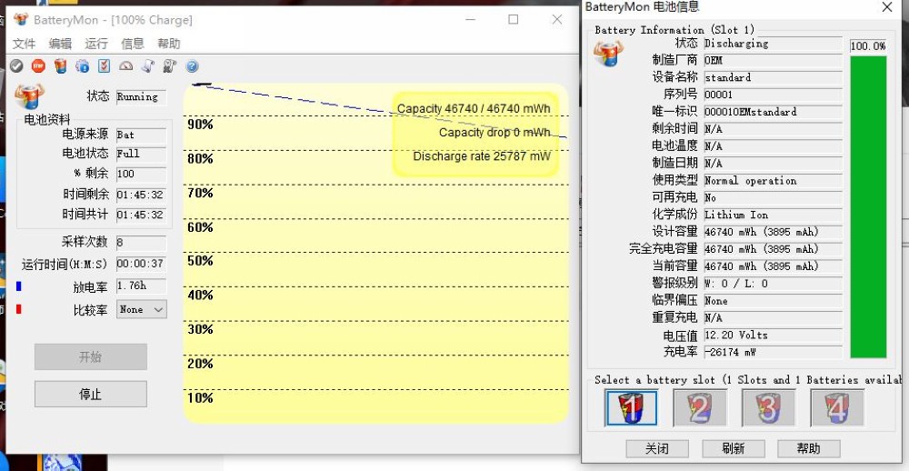 使用Battery Mon检测,X3在满电下预放电约1:45分左右,基本符合我这段时间的不插电常规使用结果!
