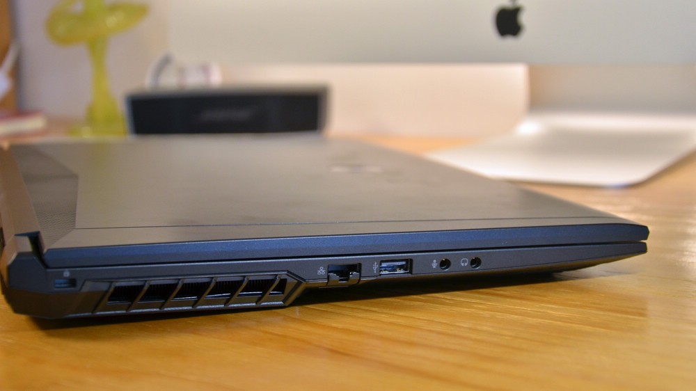 右侧有SD读卡口,2个USB3.1 Gen 1插口和一出风散热口,嗯,这出风口虽外观与左侧出风口类似,但其却是做了出风偏转处理的,因为大多数人是右手执鼠标,这冬天还好说,可到了夏季如热风是直吹到手上那感受就不爽了!!。