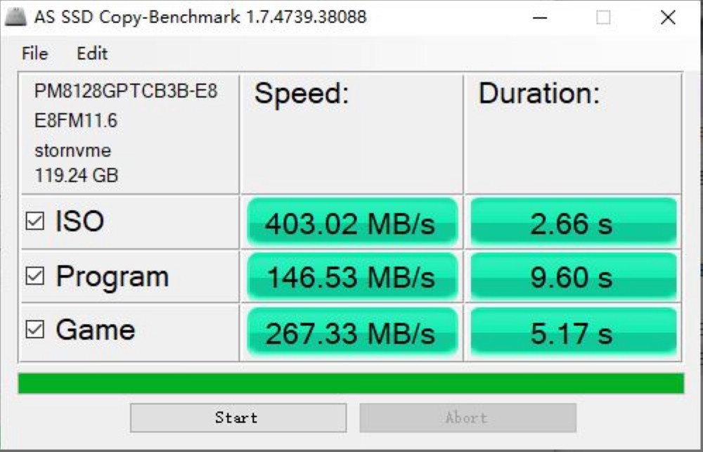 在X3 WIN10系统中 PM8 128G这块 PCIE SSD模拟ISO镜像,应用程序,游戏的运行随机测试结果。