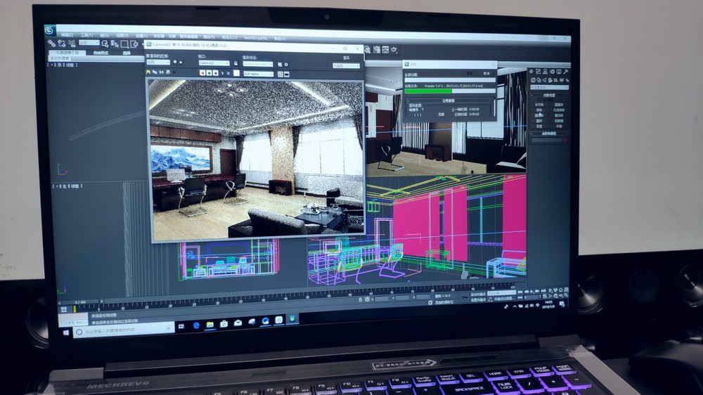 六核十二线程的第八代i7-8750H处理器,嗯,相对做3D图的来讲12线程更为吸引我们。因为我们在做图中的VR用的就是CPU的线程渲染,原理上讲线程越多,渲染的速度就会越快的。想想几年前,我们出一张图就需要至少4-8小时,而如需要更多的渲染小白框(线程越多,小白框就越多),就只能多台PC组网才能实现快速出图,现在一台本本就能实现,这真是太爽了!!!所谓图形游戏不分家,其实就是这个道理,我们做图形的除非使用昂贵的图形工作站,从游戏本的性能配置特点来讲,游戏本就是我们学生或小工作室的最佳标配。