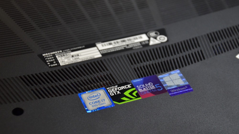 D面上的这个张小标签,看着还挺顺眼的,因为它们是本本的软硬件配置身份的象征。INTEL I7 CPU(8750H),NVIDIA独立显卡(1050Ti),SOUND BLASTER 5音效,正版 WIN10系统。