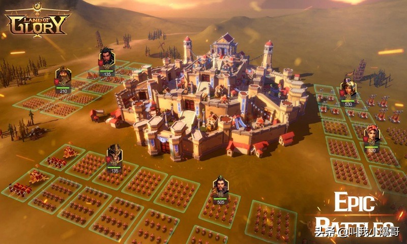 玩家可以在地图上扩展自己王国的领土,并建立自己的军队并参加人类有史以来最伟大的战争在对战中,我们能体验到cok-like类SLG(坐标型沙盘大地图、重战略策略轻战术策略游戏)中攻城战、遭遇战等不同的对战形式。玩家在战争中可以调整出战的阵容和站位,用以左右战局走势。