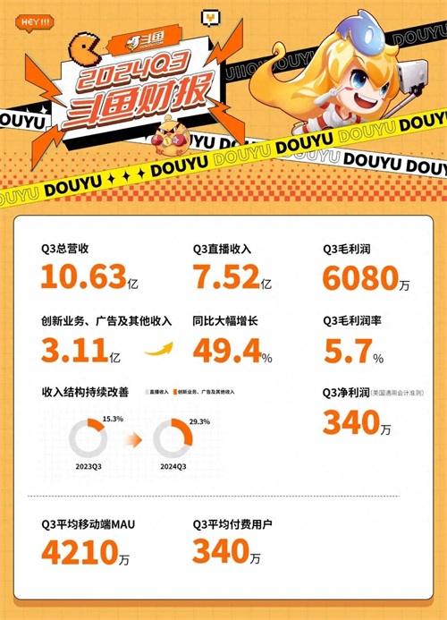 某种程度上,斗鱼盈利能力的提升与平台持续改善运营效率有关。财务数据显示,第三季度斗鱼的总成本为10.023亿元,相比2023年同期下降了14.1%。