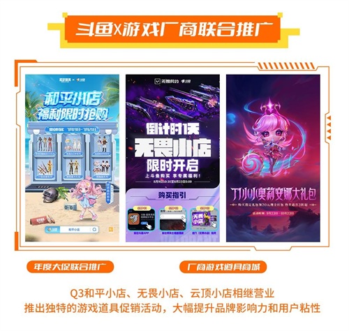 就游戏道具这一业务上,斗鱼充分调动了平台资源,通过在直播间嵌入游戏厂商的道具商城、联动大主播加强营销活动的趣味性等方式,满足厂商推广与玩家消费的需求,让斗鱼成为“好看、好玩、好买”的游戏内容平台。