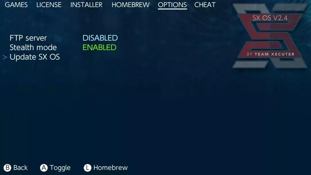 SX系统,除了可以联网更新SX OS系统之外,最新的版本还支持开启Stealth mode,也就是从软件内部将任天堂的网络端口屏蔽,防止你误操作联网被ban机。