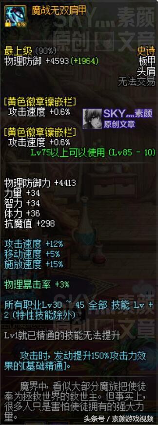 在齐一整套防具B套之前,头肩部位都可以带魔战肩;但在齐防具B套之后,一定不要再留恋魔战肩了。所以魔战肩虽强,但男弹药玩家们一定不要把它当作毕业装备来打造对待。魔战肩对男弹药平X的提升分析就到此结束,感谢您的阅读。
