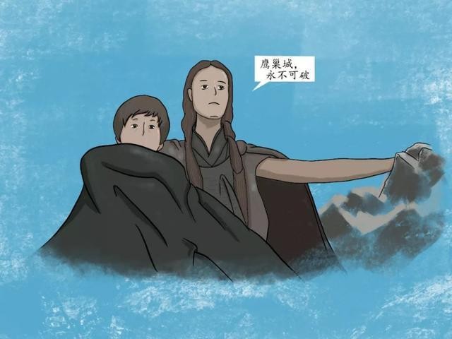 艾林族徽上的猎鹰,展翅翱翔,得益于高耸的地理位置,如果没有硕大凶猛的大鸟或飞龙,鹰巢城很难攻克。即使当年的疯王也未曾真正攻下鹰巢城,艾林家族不战而降,他们知道自己无力与坦格利安一争高下,所以飞翔的雄鹰可以理解为艾林家族对整个山谷的统治从未间歇过。除了坦格利安外,唯一族徽出现飞物的就是艾林家族,这是他们的战略优势。比其他种族有更高的视野,通观全局。和龙妈那一挂一样,艾林家族总让人觉得他们和魔法有关,从月门看下去,似乎只是从高空俯瞰大地,但它们看起来似乎和一些神秘的超能力量有关,这座天空之城上发生的事情确实展现了璀璨华丽的非凡视角。