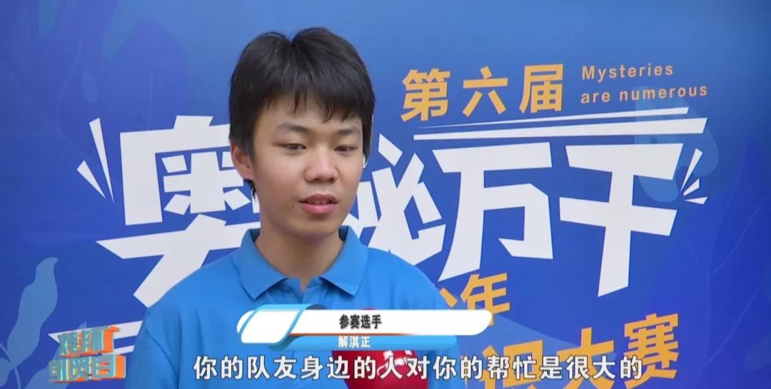 参赛选手 解淇正 :就是能更加深刻地理解到,你的队友,你身边的人对你的帮助是很大的。如果你一个人来做这件事的话,会觉得非常的困难。但是他们在你身边,他们能鼓励你,帮助你,你就能感觉到身后有人推着我,我能更有信心地完成这些事情。