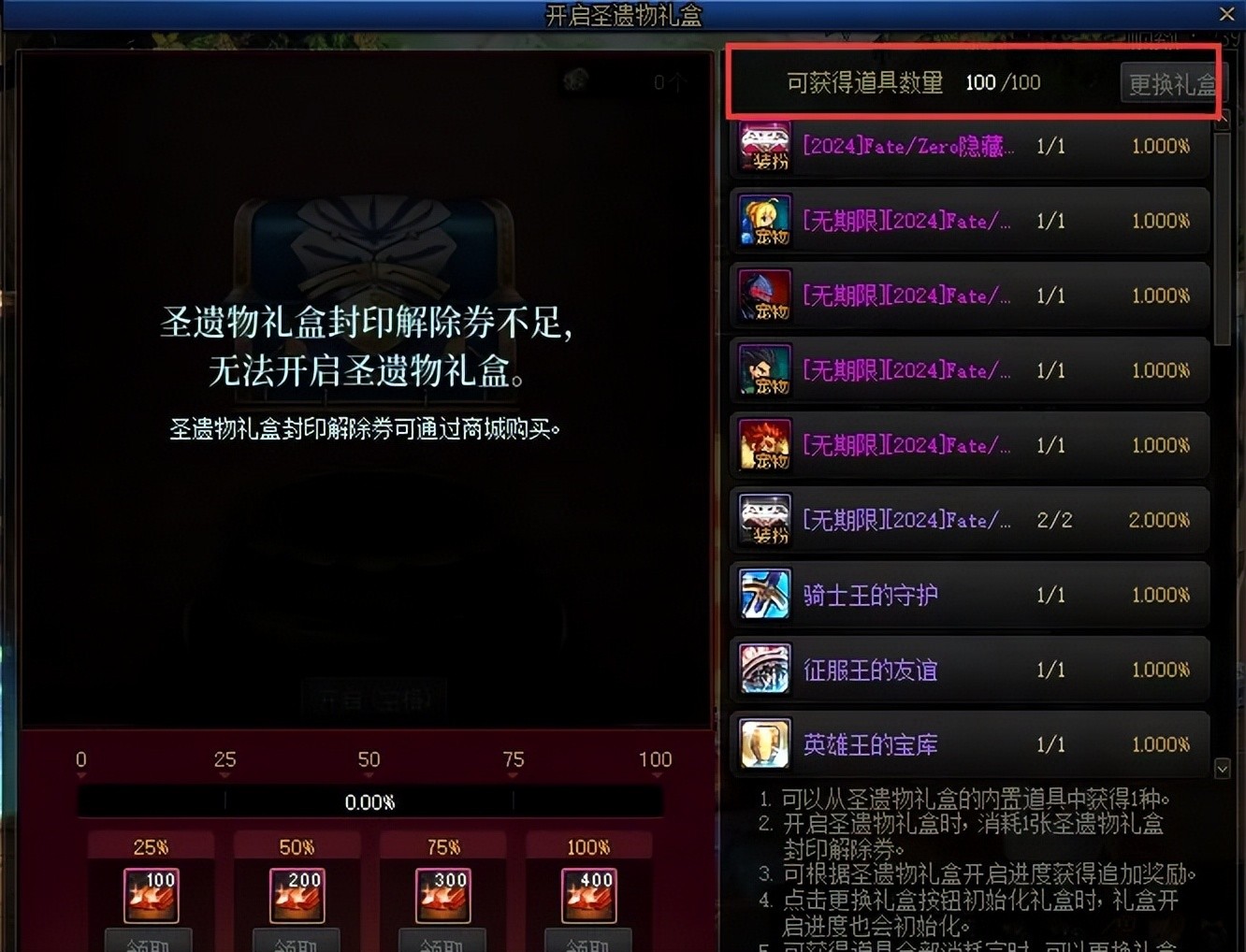 100个封印解除券可以保底拉满抽奖池中的所有道具,主要包括了: