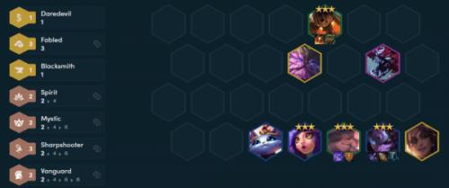 阵容内有三个核心三星泰坦、提莫和希维尔,妮蔻和猫咪也可以辅助拿,反正可以将山海往死里怼,布隆三星也是非常能顶,但是剑魔和奥恩的提升要更大,也没那么多格子额外赌一个布隆。