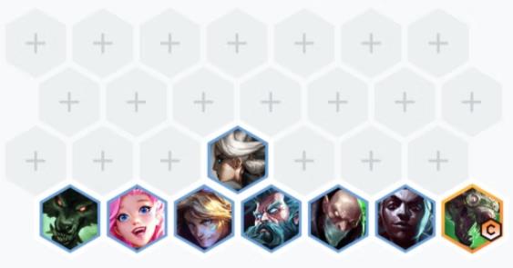 阵容英雄分散站位,尽量少吃对面的Aoe伤害。艾克和老鼠站同侧提供辅助,观察好外面站位,注意换位,老鼠千万不要跳对方人群,很容易吃Aoe直接G ,炼金盯着对面最肉的前排丢,面对抱团阵容可以做法衣和冰心及时进行针对。