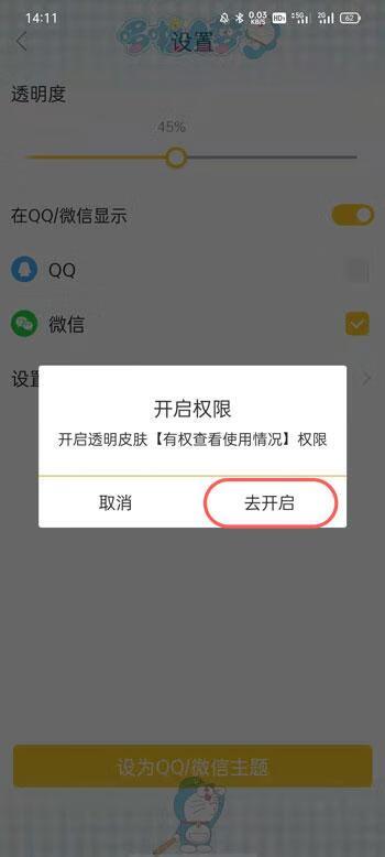 6.最后只需要开启透明皮肤的有权查看使用情况的权限,即可完成微信透明壁纸设置。